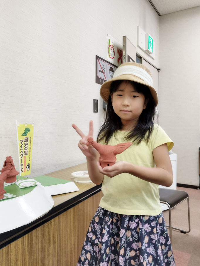 笑う盾持ち人埴輪やヒヨコを背にのせた鶏埴輪など、アレンジを楽しんでくれたようです。