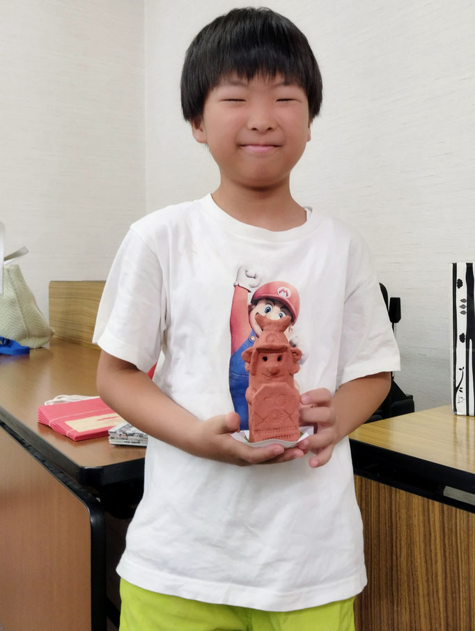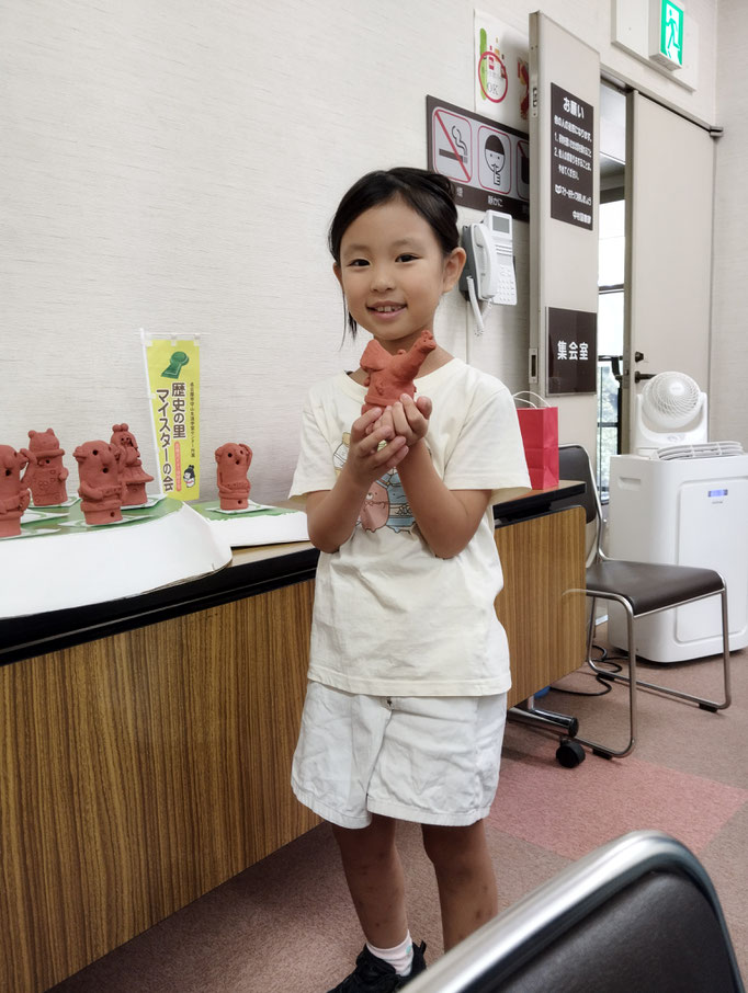 あつい、あつい、夏休みも残りわずかとなりました。「夏休み宿題応援」と題して(とは言っても大人も参加できます)ミニサイズの埴輪づくりに16名が体験されました。